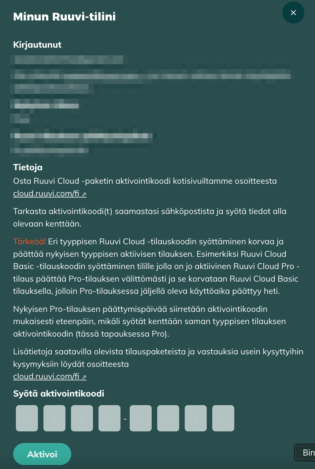 Kuinka aktivoin Ruuvi Cloud -tilauksen?